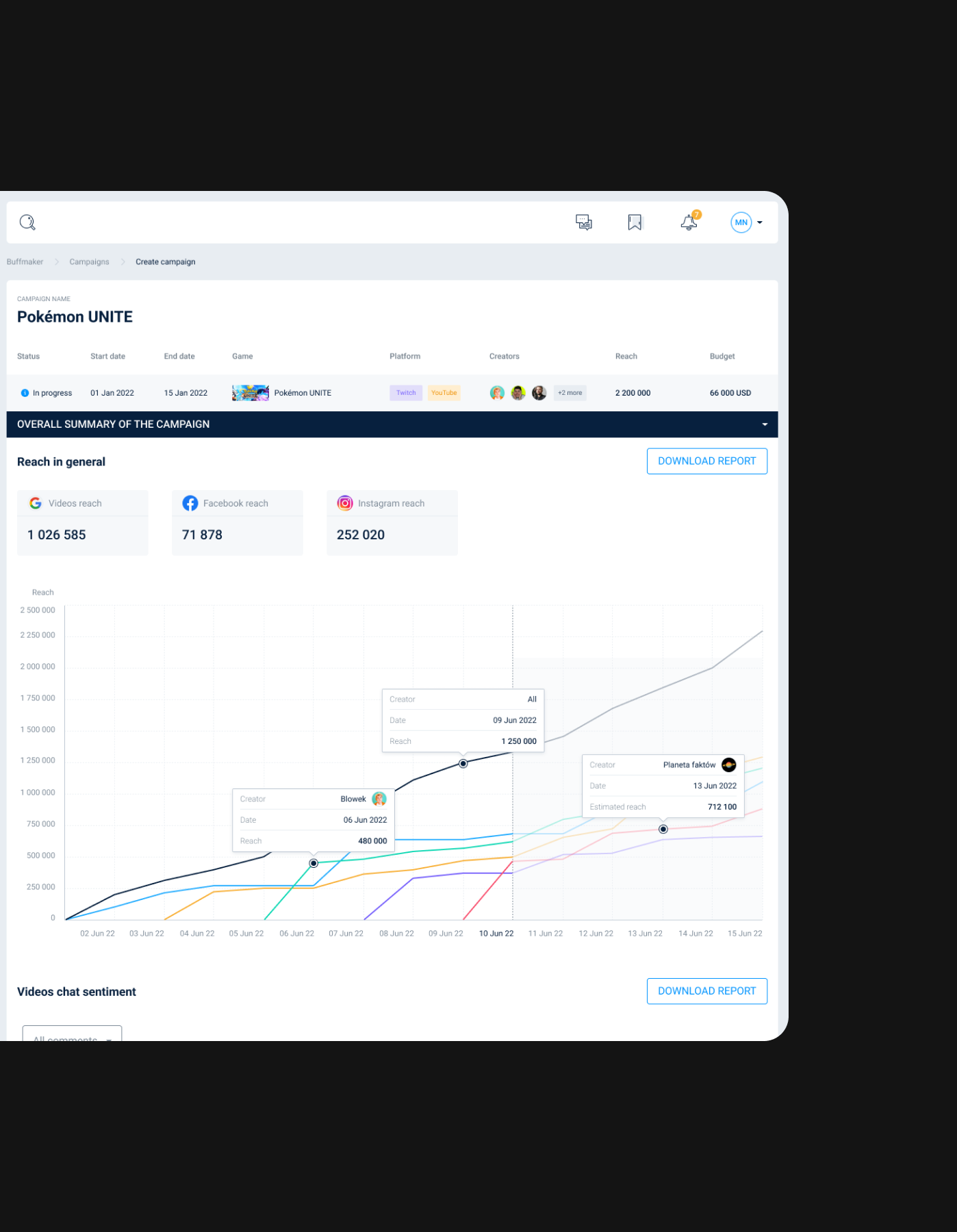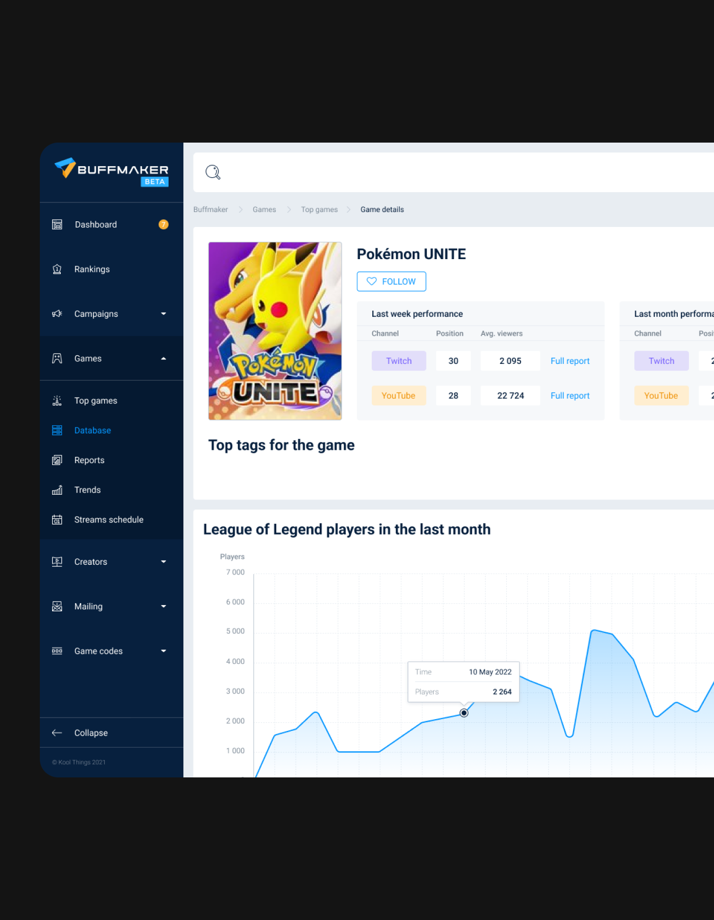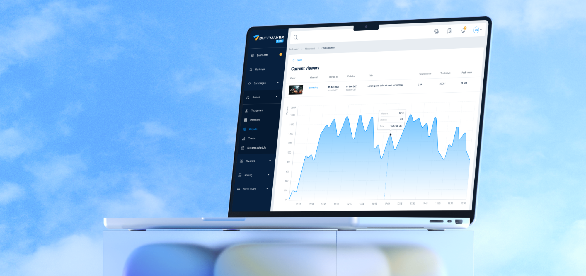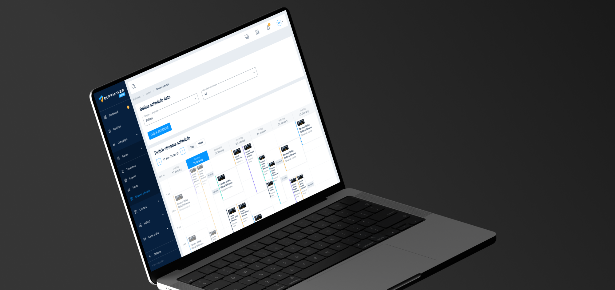 Turning complex data into clear decisionsAnalytics sit at the heart of Buffmaker. The platform processes large volumes of data related to games, influencers, campaigns, streams, chat sentiment, and media coverage. The key challenge was not access to data, but making that data usable.